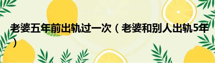 老婆五年前出轨过一次(老婆和别人出轨5年)