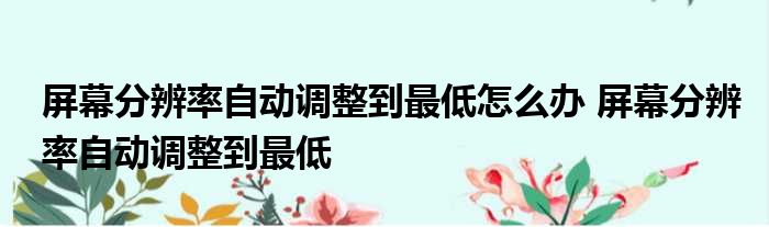 今天来聊聊关于屏幕分辨率自动调整到最低怎么办,屏幕分辨率自动调整到最低的文章,现在就为大家来简单介绍下屏幕分辨率自动调整到最低怎么办,屏幕分辨率自动调整到最低,希望对各位小伙伴们有所帮助。