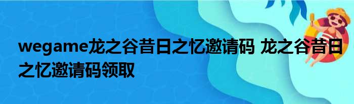 wegame龙之谷昔日之忆邀请码 龙之谷昔日之忆邀请码领取
