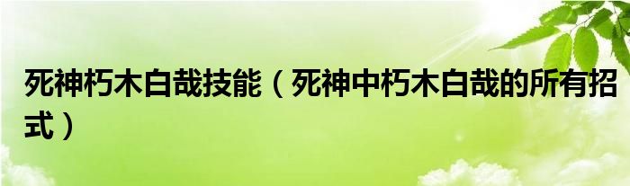 大家好,小活来为大家解答以上的问题。死神朽木白哉技能,死神中朽木白哉的所有招式这个很多人还不知道,现在让我们一起来看看吧!