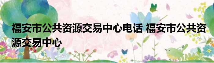福安市公共资源交易中心电话 福安市公共资源交易中心