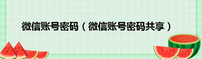 微信账号密码(微信账号密码共享)