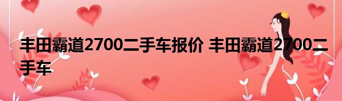 导读 今天来聊聊关于丰田霸道2700二手车报价,丰田霸道2700二手车的文章,现在就为大家来简单介绍下丰田霸道2700二手车报价,丰田霸道2700二手车