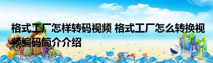 格式工厂怎样转码视频 格式工厂怎么转换视频编码简介介绍