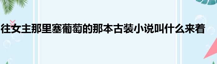 相信通过往女主那里塞葡萄的那本古装小说叫什么这篇文章能帮到你,在和好朋友分享的时候,也欢迎感兴趣小伙伴们一起来探讨。