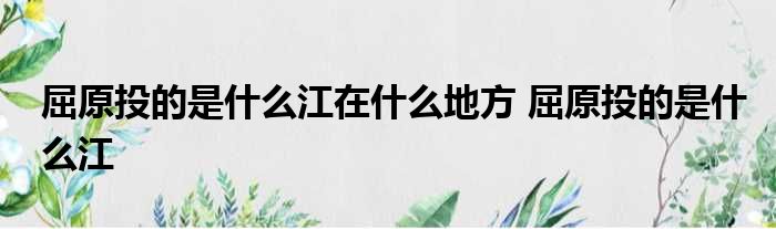 今天来聊聊关于屈原投的是什么江在什么地方,屈原投的是什么江的文章,现在就为大家来简单介绍下屈原投的是什么江在什么地方,屈原投的是什么江,希望对各位小伙伴们有所帮助。
