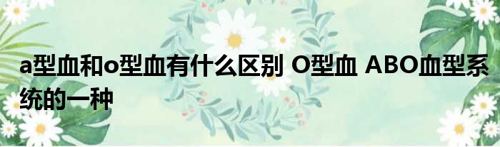a型血和o型血有什么区别 O型血 ABO血型系统的一种