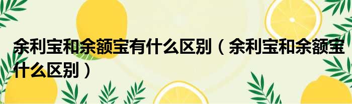 余利宝和余额宝有什么区别(余利宝和余额宝什么区别)