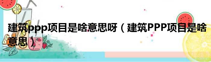 建筑ppp项目是啥意思呀(建筑PPP项目是啥意思)