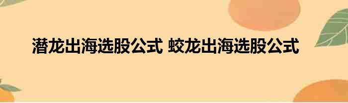 导读 今天来聊聊关于潜龙出海选股公式,蛟龙出海选股公式的文章,现在就为大家来简单介绍下潜龙出海选股公式,蛟龙出海选股公式,希望对各位小伙