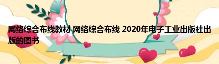 1、《网络综合布线》是2020年电子工业出版社出版的图书。