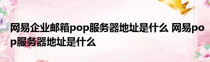 网易企业邮箱pop服务器地址是什么 网易pop服务器地址是什么