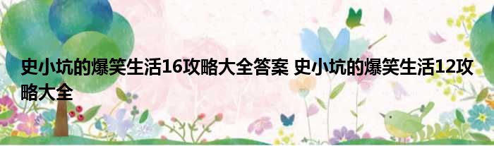 史小坑的爆笑生活16攻略大全答案 史小坑的爆笑生活12攻略大全