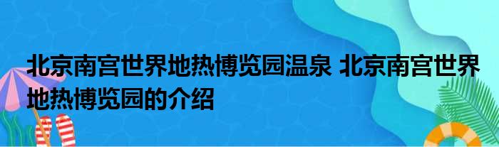 想必现在有很多小伙伴对于北京南宫世界地热博览园的介绍方面的知识都比较想要了解,那么今天小好小编就为大家收集了一些关于北京南宫世界