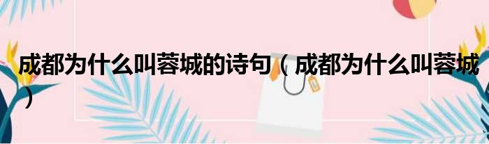 成都为什么叫蓉城的诗句(成都为什么叫蓉城)