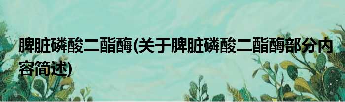 脾脏磷酸二酯酶(关于脾脏磷酸二酯酶部分内容简述)