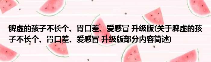 导读 大家好,今天小方来说说一篇关于脾虚的孩子不长个、胃口差、爱感冒 升级版,关于脾虚的孩子不长个、胃口差、爱感冒 升级版部分内容简述的