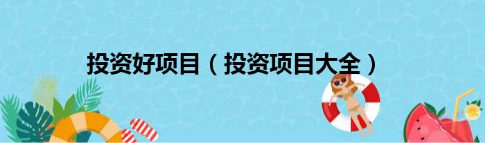 投资好项目(投资项目大全)