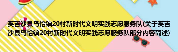 英吉沙县乌恰镇20村新时代文明实践志愿服务队(关于英吉沙县乌恰镇20村新时代文明实践志愿服务队部分内容简述)