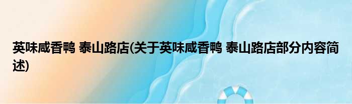 英味咸香鸭 泰山路店(关于英味咸香鸭 泰山路店部分内容简述)
