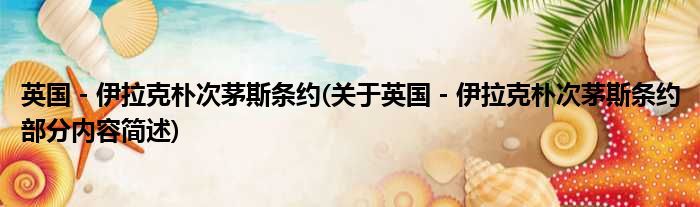 导读 大家好,今天小方来说说一篇关于英国-伊拉克朴次茅斯条约,关于英国-伊拉克朴次茅斯条约部分内容简述的文章,那么现在就为大家来简单介绍