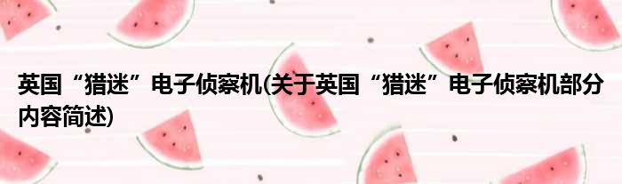 英国“猎迷”电子侦察机(关于英国“猎迷”电子侦察机部分内容简述)