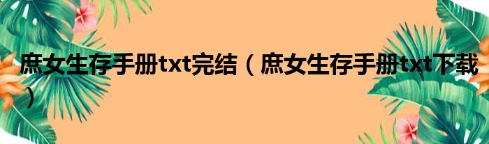 庶女生存手册txt完结(庶女生存手册txt下载)