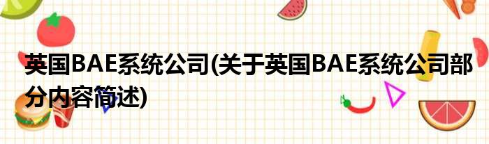 英国BAE系统公司(关于英国BAE系统公司部分内容简述)