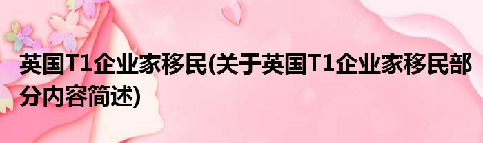 导读 大家好,今天小方来说说一篇关于英国T1企业家移民,关于英国T1企业家移民部分内容简述的文章,那么现在就为大家来简单介绍下,希望对各位小