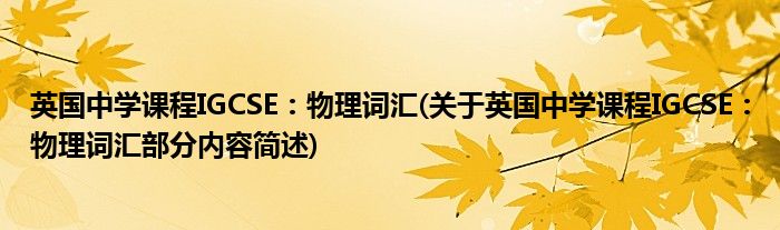 英国中学课程IGCSE:物理词汇(关于英国中学课程IGCSE:物理词汇部分内容简述)