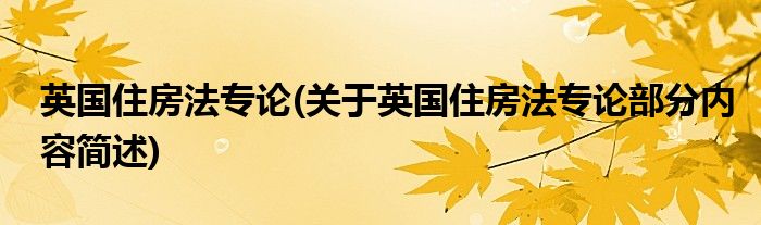 英国住房法专论(关于英国住房法专论部分内容简述)