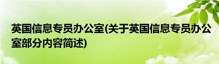 英国信息专员办公室(关于英国信息专员办公室部分内容简述)