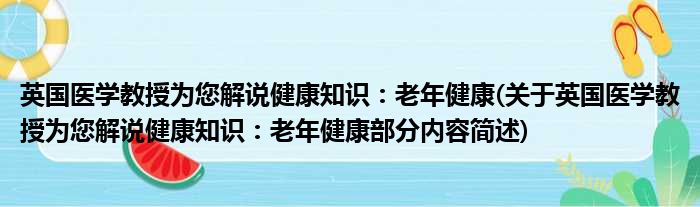 导读 大家好,今天小方来说说一篇关于英国医学教授为您解说健康知识:老年健康,关于英国医学教授为您解说健康知识:老年健康部分内容简述的文章