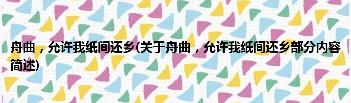 大家好,今天小方来说说一篇关于舟曲,允许我纸间还乡,关于舟曲,允许我纸间还乡部分内容简述的文章,那么现在就为大家来简单介绍下,希望对各位小伙伴们有所帮助。