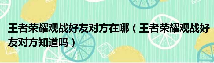 王者荣耀观战好友对方在哪(王者荣耀观战好友对方知道吗)