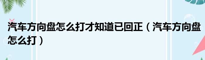 汽车方向盘怎么打才知道已回正(汽车方向盘怎么打)
