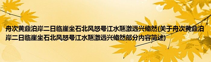 舟次黄鼎泊岸二日临崖坐石北风怒号江水豗激远兴翛然(关于舟次黄鼎泊岸二日临崖坐石北风怒号江水豗激远兴翛然部分内容简述)