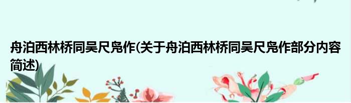 舟泊西林桥同吴尺凫作(关于舟泊西林桥同吴尺凫作部分内容简述)