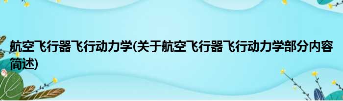 航空飞行器飞行动力学(关于航空飞行器飞行动力学部分内容简述)