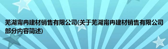 芜湖甯冉建材销售有限公司(关于芜湖甯冉建材销售有限公司部分内容简述)
