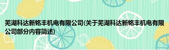 芜湖科达新铭丰机电有限公司(关于芜湖科达新铭丰机电有限公司部分内容简述)