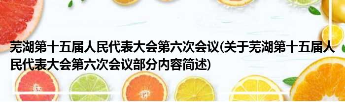 芜湖第十五届人民代表大会第六次会议(关于芜湖第十五届人民代表大会第六次会议部分内容简述)