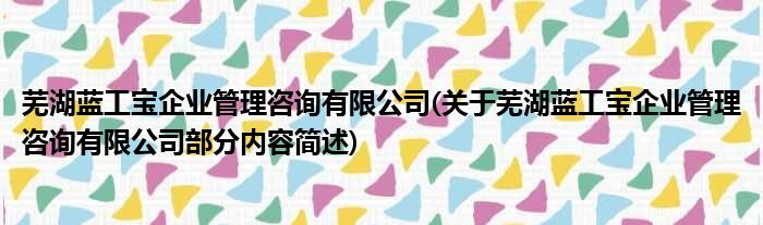芜湖蓝工宝企业管理咨询有限公司(关于芜湖蓝工宝企业管理咨询有限公司部分内容简述)