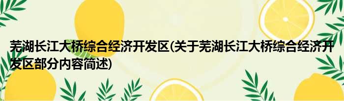 芜湖长江大桥综合经济开发区(关于芜湖长江大桥综合经济开发区部分内容简述)