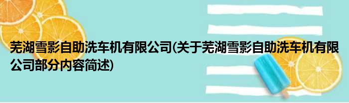 芜湖雪影自助洗车机有限公司(关于芜湖雪影自助洗车机有限公司部分内容简述)