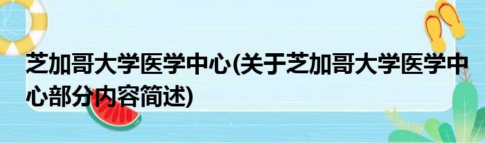 芝加哥大学医学中心(关于芝加哥大学医学中心部分内容简述)