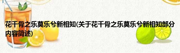 导读 大家好,今天小方来说说一篇关于花千骨之乐莫乐兮新相知,关于花千骨之乐莫乐兮新相知部分内容简述的文章,那么现在就为大家来简单介绍下,