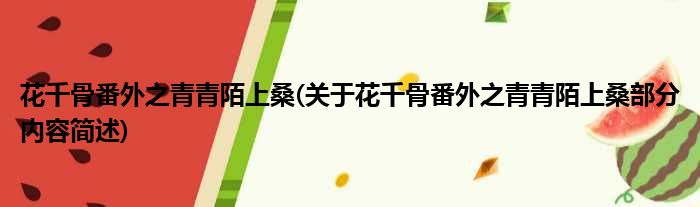 导读 大家好,今天小方来说说一篇关于花千骨番外之青青陌上桑,关于花千骨番外之青青陌上桑部分内容简述的文章,那么现在就为大家来简单介绍下,