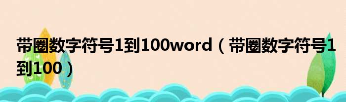 大家好,小活来为大家解答以上问题。带圈数字符号1到100word,带圈数字符号1到100很多人还不知道,现在让我们一起来看看吧!