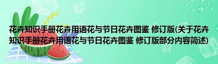 导读 大家好,今天小方来说说一篇关于花卉知识手册花卉用语花与节日花卉图鉴 修订版,关于花卉知识手册花卉用语花与节日花卉图鉴 修订版部分内